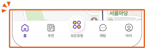 ▪ 검색, 추천 콘텐츠, 채팅 등 자주 쓰는 메뉴를 화면 하단에 고정하여, 빠르게 메뉴를 전환할 수 있습니다. 3. 다양한 공간 카테고리