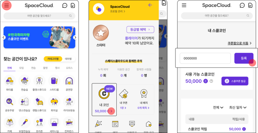 기존에 사용되던 스클쿠폰의 단점은 개선하고 장점은 살린 스클코인을 소개합니다. 스페이스클라우드를 이용해 보신 분들이라면 공간을 예약할 때 쿠폰을 사용해 보신 적 있을 거예요. 예약 시 클릭만으로 편하게 할인을 적용받을 수 있어 호스트와 게스트 모두에게 선호도가 높았어요.