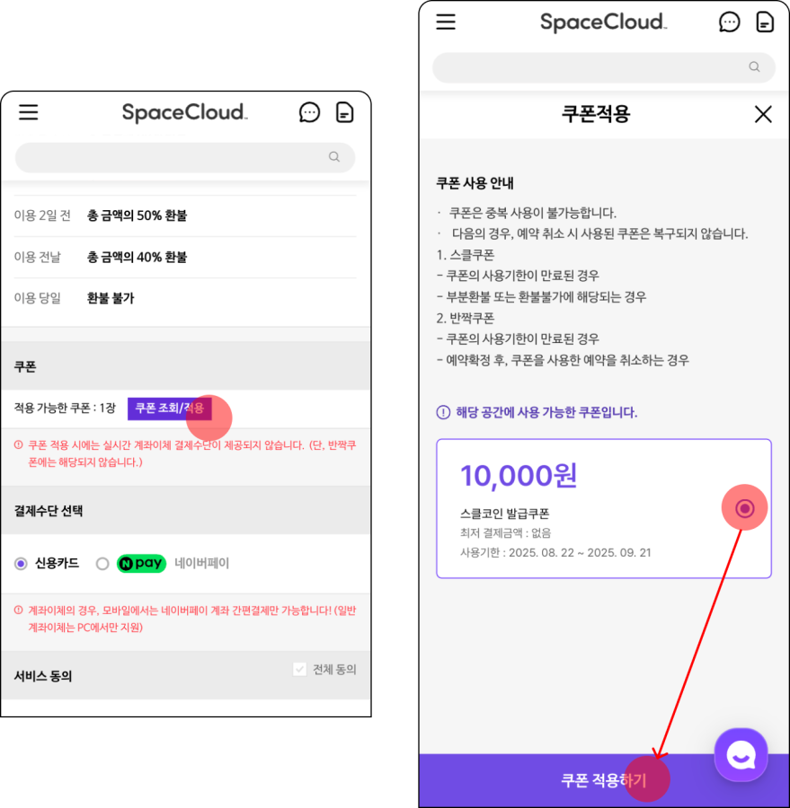💡공간예약 1건 당 스클쿠폰은 1개씩 적용할 수 있어요.