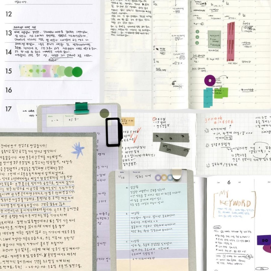 한 달, 6개월, 1년 등 다이어리를 기간에 따라 나눠 판매하고 있어요. 덕분에 개인, 업무용 다이어리로 나눠 사용할 수 있어 편했어요. 노트의 종류 역시 다양한데 커버는 같지만 무선, 유선, 모눈 등 다양한 내지가 있어 잘 확인하고 구매하는 것이 좋아요.