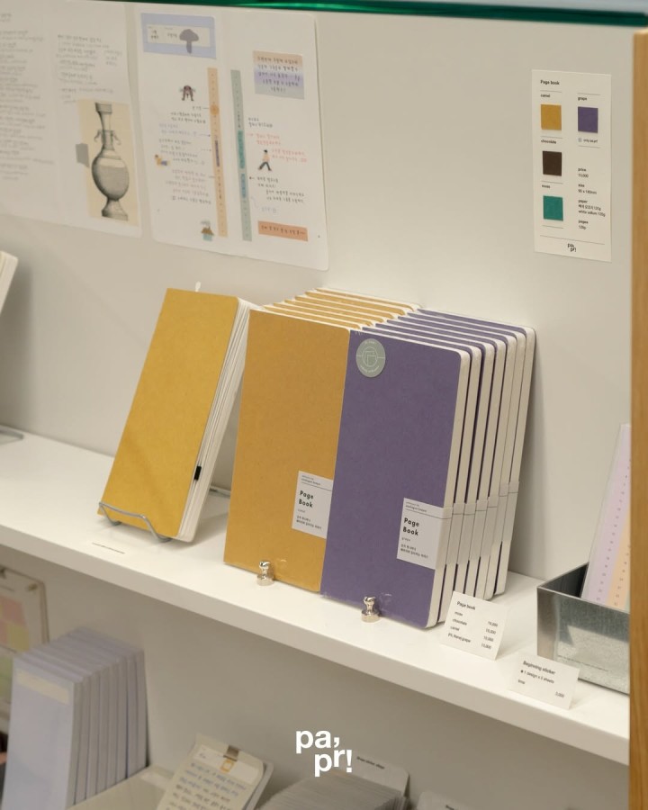 파피어프로스트는 항상 제품 옆에 예시 페이지를 함께 진열해요. 다양하게 사용한 실제 사례를 보면서 구입할 수 있어 내가 이 제품을 어떻게 사용할 수 있을지가 그려지더라고요. 열심히 기록하는 것이 익숙하지 않은 사람들에게 좋은 가이드가 될 것 같아요.