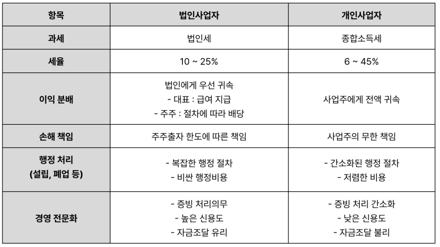 개인사업자: 사업 초창기에 매출 규모가 크지 않아 적용되는 세율이 낮고, 신속한 의사결정을 통해 사업 규모를 키워야 하는 경우.