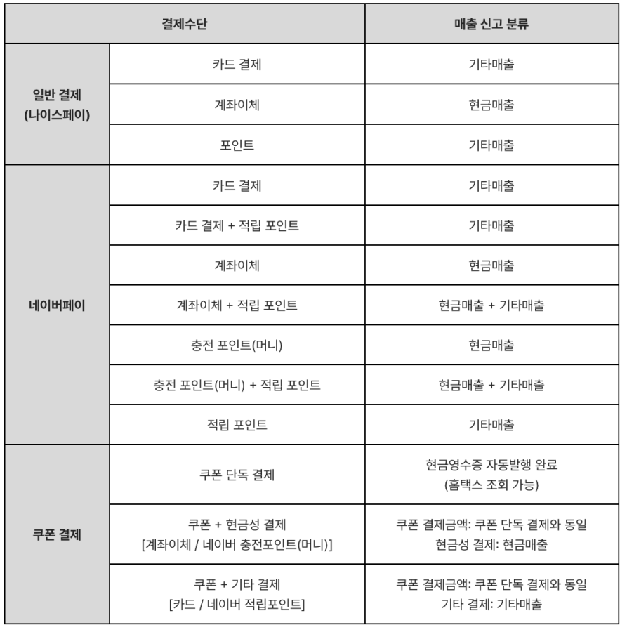 스페이스클라우드에서 진행된 카드 결제는 국세청에 자동으로 기록되지 않아요. 카드 결제 내역은 정규 영수증 외 과세 매출분(기타매출)으로 신고해 주세요.