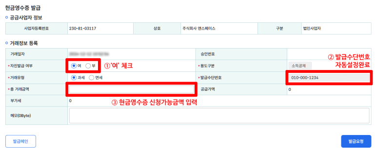 현금영수증이 발급된 건은 홈택스 내에서 바로 불러올 수 있어요. 다만 현금영수증 미발급된 건은 ‘현금영수증 발행가능금액’을 자진 발급해 주셔야 해요. 자세한 내용은 위에서 안내드린 가이드를 다시 확인해 주세요.