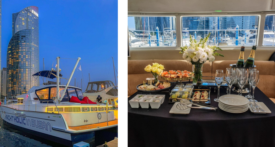 바다와 맞닿아 더 특별한 부산을 요트에서 경험해 보세요. 통째로 대여해 파티, 브라이덜 샤워 등 다양한 행사 진행이 가능한 요트 파티룸입니다. 행사 진행 전후로 프라이빗 요트 투어도 추가로 이용이 가능해요. 요트 내부에 냉난방 시설, 테이블, 화장실 등 각종 시설이 완비되어 있고 뷔페 케이터링, 현수막 등 다양한 옵션이 있어 특별한 파티를 원하는 사람이라면 살펴보세요. 해운대의 수영만 요트 선착장에서 탑승할 수 있습니다. 최대 15명까지 이용이 가능하고, 프러포즈 등의 용도로도 자주 대여되고 있어 크리스마스 이벤트에도 잘 어울려요. 🔗 공간 링크