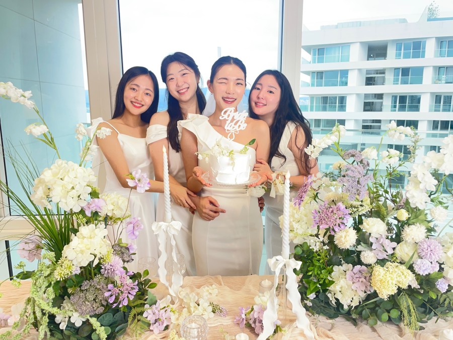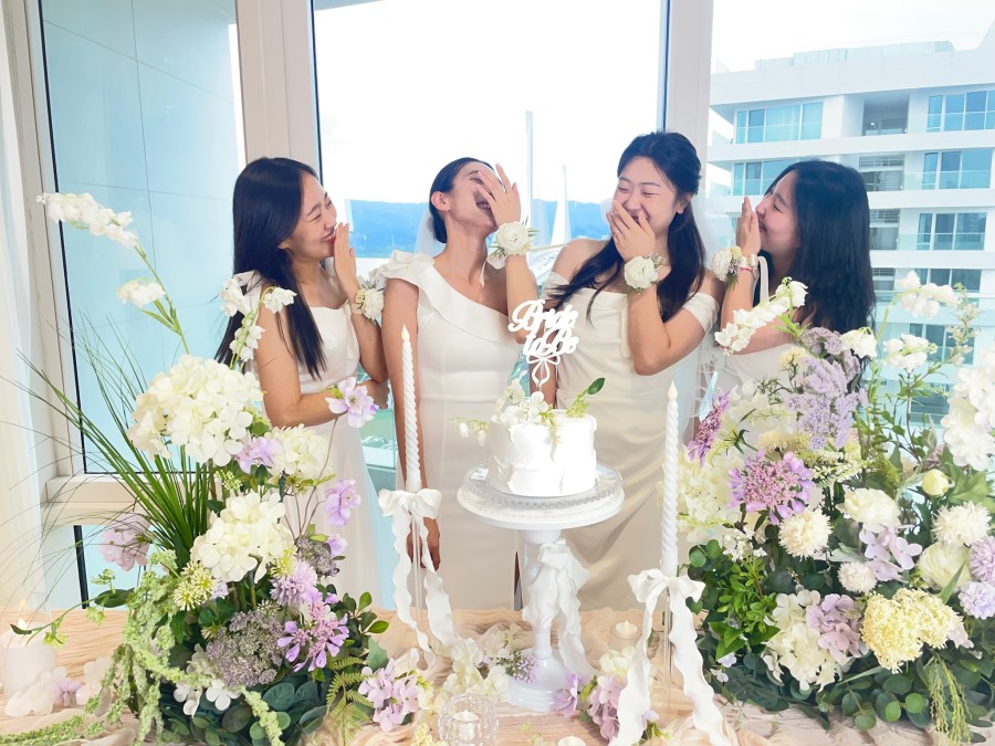 그래서 이 사진이 그날 찍은 것 중 가장 마음에 드는 사진이에요. 남들 눈에는 아니겠지만 저는 친구들이 우리가 처음 만났던 중학생 때의 얼굴로 보여요. 브라이덜샤워하면서 느꼈던 것이 우리가 너무 예전과 달라진 게 없는 거예요. 만나서 떡볶이 먹고, 같은 일로 즐거워하는 모습이 10년이라는 시간이 흐른 게 맞나? 하는 생각도 들더라고요. 그러면서도 우리가 인생에서 정말 중요한 시간을 이번에도 함께 보낼 수 있었다는 걸 실감해 더 특별한 시간이었어요.