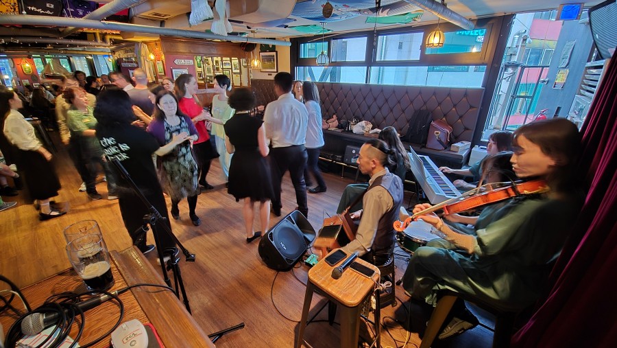 저희는 아일랜드 사장님이 운영하는 이태원의 ‘더크랙하우스’ 아이리시 펍에서 매 달 2~3번 정기적인 연주 모임인 ‘펍 세션’을 이어나가고 있는데요. 이곳은 한국에 거주하는 아이리시들의 사랑방이자 아지트 같은 곳이기도 해요. 어느날은 한 아일랜드 여성 손님이 문을 열고 들어오자마자 발걸음을 멈추고 눈을 크게 뜬 채 저희를 바라보더니 갑자기 댄스를 추기 시작했어요. 알고 보니 어릴 적 학교에서 배웠던 춤인데, 음악을 듣는 순간 몸이 먼저 반응했다고 하더군요. “한국에서 이런 순간을 다시 만나게 될 줄 몰랐다”며 고마운 마음을 전해주셨는데 제게도 감동적인 일이었어요.