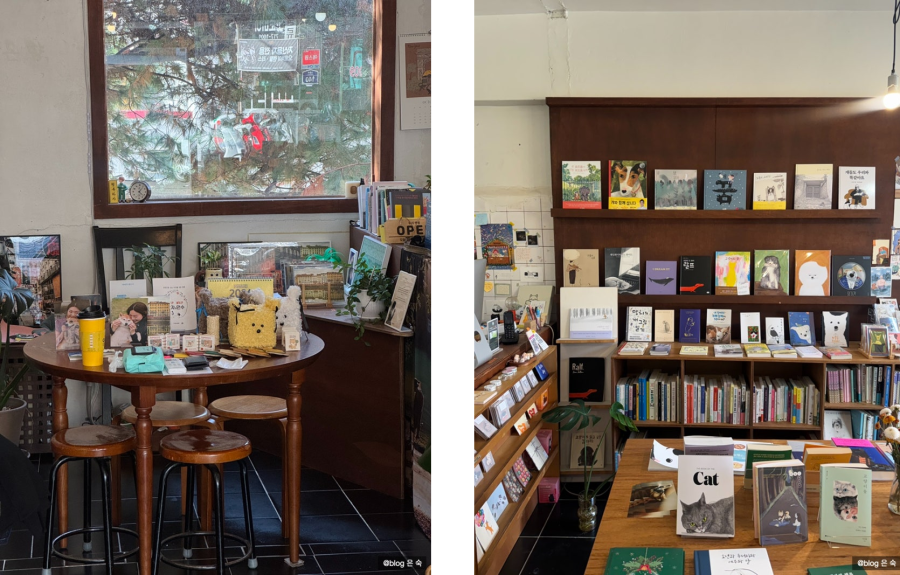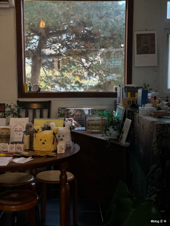 주제와 맞게 귀여운 고양이와 강아지에 관련된 아기자기 한 책들이 가득했어요. 🐈🐶📚 저는 이 통창 뷰가 가장 매력적이더라구요. 후암동 뷰를 볼 수 있는 통창과 흔들리는 나무들, 그리고 그 앞에는 후암동 감성이 녹아져 있는 여러 굿즈들이 가득했습니다. 이런 귀여운 포토 카드도 곳곳에 정말 많았구요. 책도 책이지만, 다양하게 구경할거리가 많은 독립서점이에요. 이렇게 서점을 대여할 수 있다니 참 매력적이지 않나요? 연말에 연인과 후암동 데이트 코스를 찾고 있다면 추천하고 싶은 공간입니다.