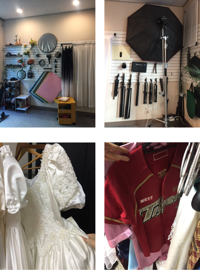 파우더룸 존에 고데기도 있고 헤어젤도 있어요. 삼각대, 스탠드, 지속광 조명 등 촬영 장비도 자유롭게 이용 가능! 의상 대여는 문의해 보시면 좋을 것 같아요. 저는 기아 타이거즈 유니폼이 탐나더라고요. 웨딩 스냅도 촬영하시는 작가님이라 빈티지 웨딩드레스도 있는데 문의 시 저렴하게 대여 가능하다고 합니다! 탈의실로 쓸 공간도 있어 의상을 챙겨온 경우 불편하게 갈아입지 않아도 돼서 좋았어요.